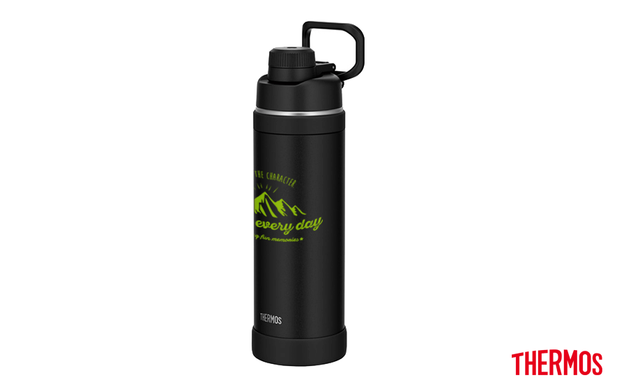 サーモスのステンレス、真空断熱ケータイマグです。カラーバリエーションは4色ございます。キャップをひねって開けるクイックオープンタイプのケータイマグに、持ち運びに便利なキャリーループがついたモデル。1000mlの大容量サイズなので学校などの日常シーンに加えてスポーツシーンでも活躍します。パーツも本体も食洗機対応モデルで、キャップユニットは外して隅々まで洗うことができます!サーモスの商品は、10個からオリジナルプリント製作できます。記念品としておすすめです!プリントデザインと印刷色が同じなら本体カラーを組み合わせても料金変わりません。容量別に750mlと1500mlの商品もご用意しております。