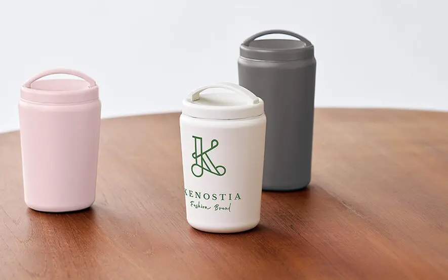 見た目もスタイリッシュなハンドル付きのHanditシリーズのタンブラーです。持ち運びに便利なハンドル付きデザインで、オフィスやカフェにも自然に馴染むカラー展開が魅力です。内側には銅メッキ加工を施しており、高い保温・保冷効果で一年を通して快適にご使用いただけます。ロゴやイラストを入れたオリジナルタンブラーとして、カフェの常設グッズやコラボカフェの記念アイテムにもおすすめです。同デザインで520mlサイズの展開もあり、統一感のあるラインナップでの提案も可能です。デザイン性と機能性を兼ね備えた、ワンランク上のオリジナルタンブラーを作成しよう!