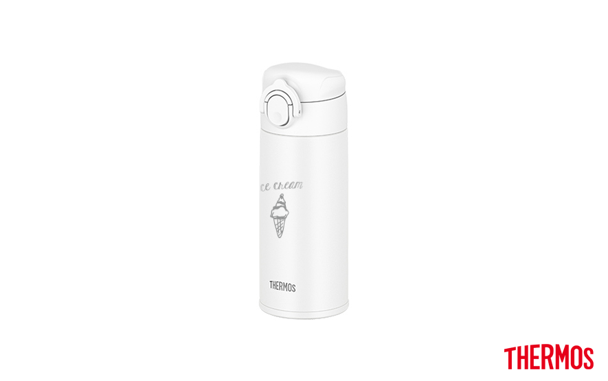 サーモス(THERMOS)より食洗器対応モデル JOKの350mlタイプです、魔法びん構造だから高い保温・保冷力も備えています。本体はざらっとした手触りが高級感と落ち着いた印象のあるボトルになります。ワンタッチで飲み口の開閉が片手でらくらく、ロックが付いているので漏れがなく安心。サーモス(THERMOS)は形に残せる記念品として、贈り物等におすすめなアイテムです。