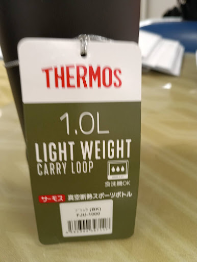 サーモス(THERMOS)の水筒(350ml)に回転シルク印刷でTHERMOSロゴと同じシルバーでプリント